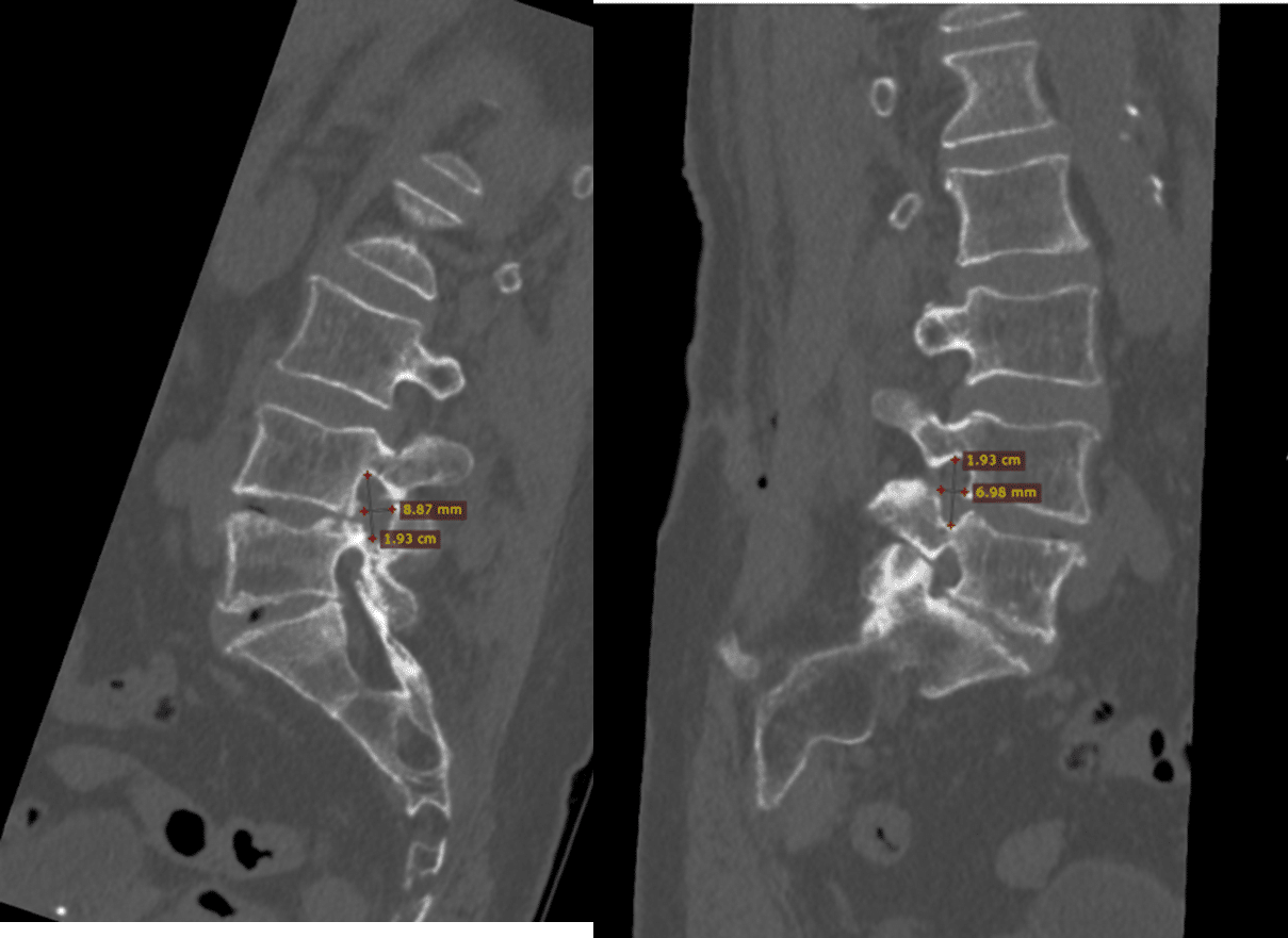 W ocenie porównawczej otworów na poziomie segmentu L4/L5 potwierdziliśmy, że techniką endoskopową odtworzono wymiary otworu porównywalne do strony przeciwnej, która nie powodowała dolegliwości bólowych.